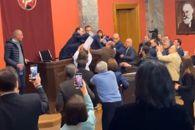 იურიდიულ საკითხთა კომიტეტის სხდომაზე, სადაც ე.წ. აგენტების შესახებ კანონპროექტის განხილვა მიმდინარეობს, დეპუტატებს შორის ფიზიკური დაპირისპირება მოხდა.