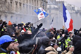 საფრანგეთში საპენსიო რეფორმასთან დაკავშირებული კანონპროექტის მიღება გააპროტესტეს, პარიზში პოლიცია...